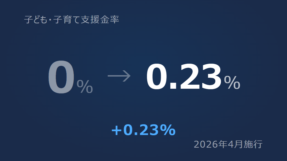 標準報酬月額×0.23%(労使折半)で算出。従業員を雇う全事業所が対象。給与計算ソフトの料率設定と給与明細の控除項目追加を2026年4月末までに確認を。
